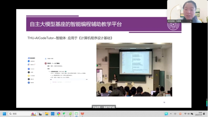 随后,清华大学马昱春教授在线分享了“AI 赋能教学创新,构建高质高效课堂”的精彩报告。马昱春认为,AI 在教学中的应用具有多面性,既能优化课程、解决教学痛点,也可能导致学生过度依赖AI,影响学习效果。她建议在教学过程中,教师应该引导学生如何使用AI,通过创新考试形式、作业形式等达成教学目标,克服其副作用。此外,她强调了在AI时代下,教师需要关注学生的真实学习需求,进行教学设计和重构。