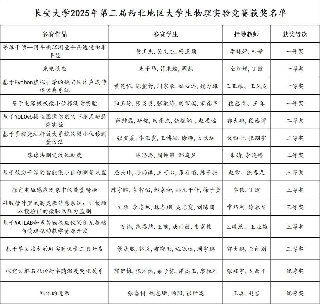 本次大赛在教务处、永利yl23411等部门的大力支持下,指导教师团队利用周末、假期,对参赛队员开展全方位的培训工作,为取得优异成绩打下了坚实基础。此次竞赛成绩是我校物理实验教学成果的一次集中展示,更是“以赛促学、以赛促教、以赛促创”育人理念的有效实践,对进一步深化学校教育教学改革、提升创新型人才培养质量具有重要意义。