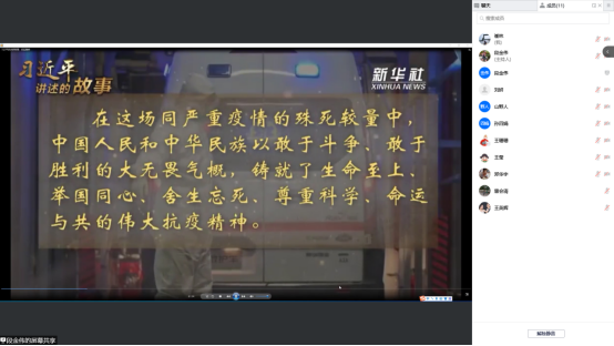 随后,全体党员集体观看了《习近平讲述的故事:抗疫精神》,大家深刻认识到:在这场同严重疫情的殊死较量中,中国人民和中华民族以敢于斗争、敢于胜利的大无畏气概,铸就了生命至上、举国同心、舍生忘死、尊重科学、命运与共的伟大抗疫精神。
