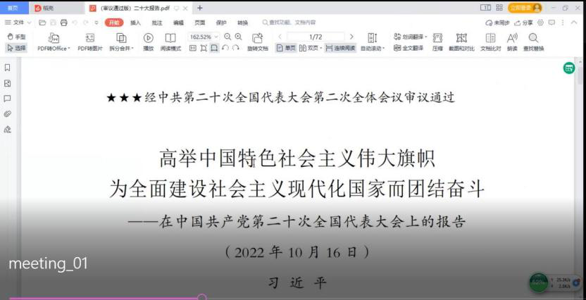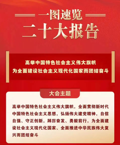 首先,王成通过新华社发布的“一图速览党的二十大报告”,介绍了整个报告的内容概要,使大家从宏观和整体上认识到习近平总书记所作的党的二十大报告,是党和人民智慧的结晶,是中国共产党团结带领全国各族人民夺取新时代中国特色社会主义新胜利的政治宣言和行动纲领,是一篇马克思主义的纲领性文献。